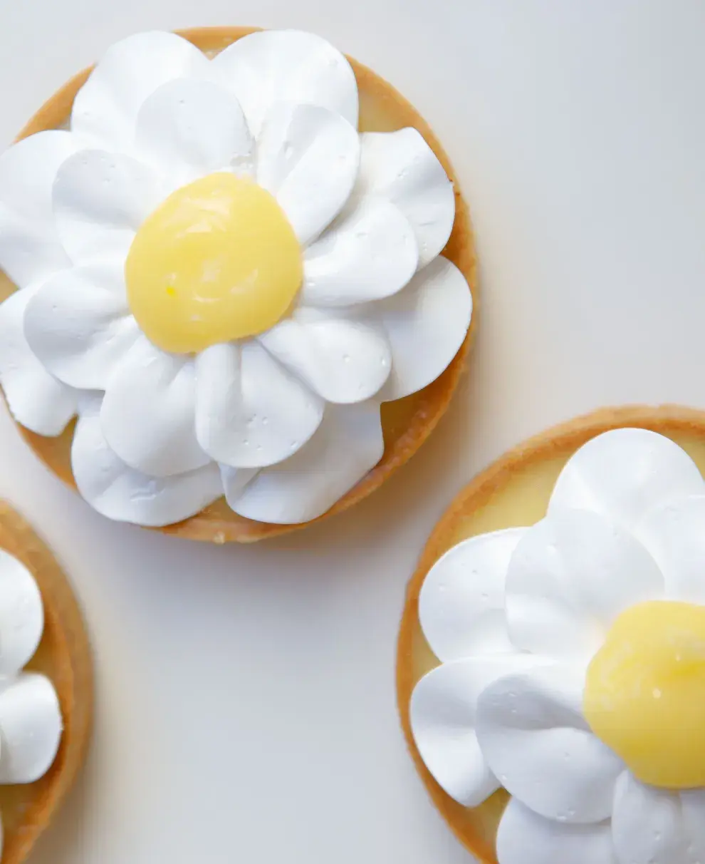 En Tallarica vas a degustar una original versión de Lemon Pie, en formato minitorta individual, plena de sabor y un delicado cuidado por el detalle. Este petit, creado por la chef patissier Daniela Tallarico, parte de una tradicional masa sablé de vainilla, que sirve de base para un cremoso relleno de limón, elaborado con manteca, yemas, azúcar, jugo y ralladura. Para lograr la característica combinación cítrica y dulce de este clásico de la pastelería, cubren el curd con una abundante cantidad de merengue francés, que decoran con una pequeña cantidad de la crema y completan con ralladura fresca de limón.
