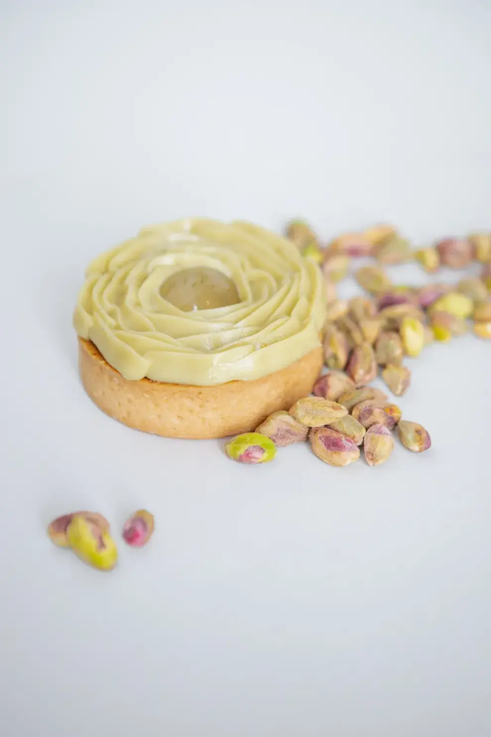 Con locales en Palermo y Belgrano, en Tallarica vas a encontrar dos originales productos inspirados en este tentador fruto seco creados por su dueña y chef Daniela Tallarico. Por un lado, un llamativo petit de pistacho y frambuesa que incluye una base de masa sablé de almendras cubierta con una capa de masa financier que, por encima, luce una untuosa crema de vainilla con un corazón de mermelada artesanal de frambuesa, además de llevar por encima una crocante cobertura de pistachos tostados. En esta pastelería también vas a poder degustar la cookie full pistacho tamaño XL, que combina una galleta humedad de pistacho con la cremosidad de la pistachella, una pasta artesanal que fusiona este ingrediente estrella con el dulzor del chocolate blanco. Y para añadirle un extra final crujiente, le agregan trozos de pistachos tostados.