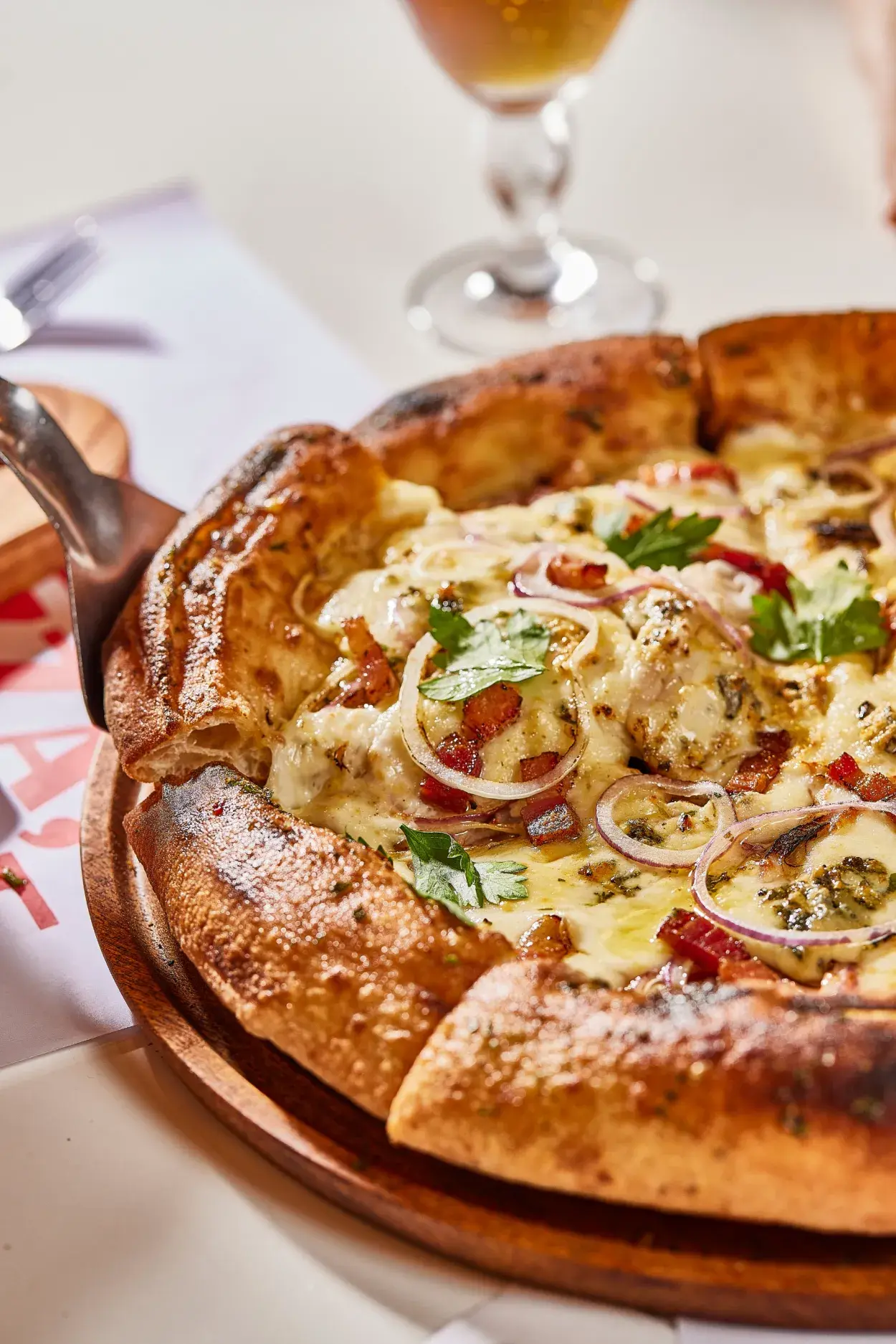 Te recomendamos probar sí o sí la pizza margherita con salsa pomodoro, mozzarella de papa, aceitunas verdes y negras, orégano fresco, y la pizza bianca con crema de ajo ahumado, láminas de papa, romero y aceite de oliva.