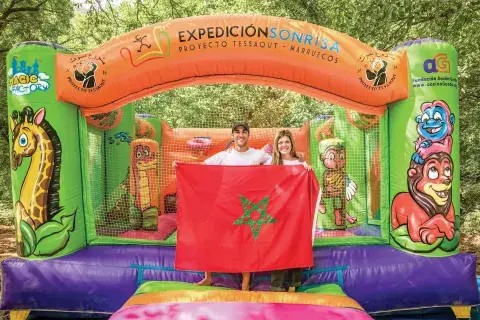 Por eso decidimos que nuestro proyecto de viaje debía tomar otro rumbo. Nuestra actividad con los niños dura un día o dos y luego debemos continuar nuestro viaje. En nuestra visita a las montañas, solamente pudimos estar en dos de las veintitrés comunidades. Por lo tanto, decidimos poner todas nuestras energías en crear la primera sede permanente de Expedición Sonrisa en este lugar. Compramos el segundo castillo inflable y firmamos un convenio con una ONG española para realizar actividades, en conjunto con voluntarios, campañas de juego y educación con los niños de las aldeas marroquíes.