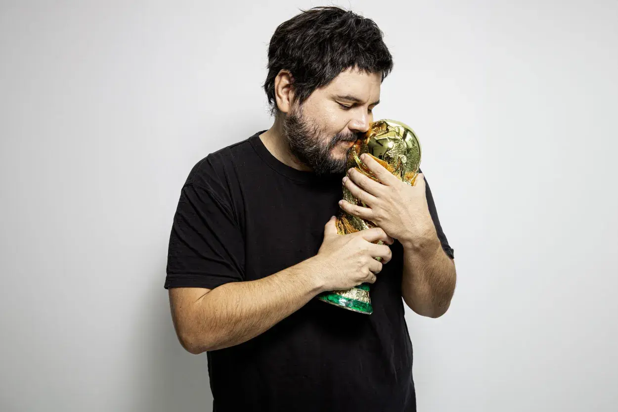 Santi Motorizado, un apasionado del fútbol, tiene una réplica de la Copa del Mundo en su casa. - Créditos: Gaspar Kunis