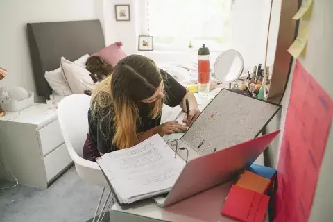 Estudiar no tiene que ser una tarea tortuosa o necesariamente solitaria. Una buena idea es favorecer espacios de trabajo compartidos: una mesa o escritorio donde cada quien esté dedicado a su tarea. No es indispensable “meterse” en lo que está haciendo el otro, sino generar un ambiente donde la concentración mande: nosotras podemos trabajar y ellos estudiar. Ambos vamos a estar abocados a lo nuestro, pero también disponibles para responder preguntas o acudir en caso de que necesiten ayuda.