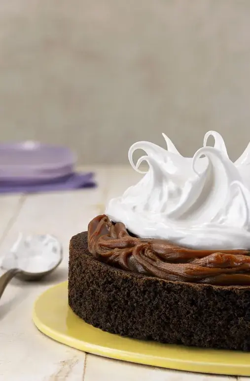 Mezclar las galletitas con la leche, aceite y yemas. Batir las claras con el azúcar hasta punto merengue firme y unir a la mezcla anterior. Volcar en un molde enmantecado de 22 cm y hornear 35 minutos a 180°C. Enfriar. Rellenar con dulce de leche. Para el merengue, preparar un almíbar a 118°C, incorporar a las claras batidas y seguir batiendo hasta que se enfríe. Colocar sobre la marquise y decorar a gusto.