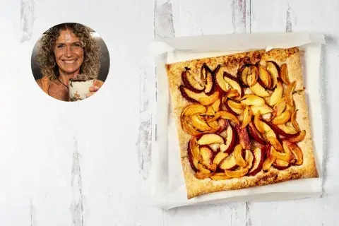 Para acompañar con un mate, té o café, compartir de postre o mandar como vianda al cole, la tarta de duraznos que propone la cocinera e influencer Maru Botana nos encanta. No solo por los sabores que integra, sino por lo fácil que es prepararla.