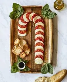 Esta tabla de bastón de caramelo al estilo "ensalada caprese" es una forma tan sencilla como llamativa de servir un snack mega sabroso.