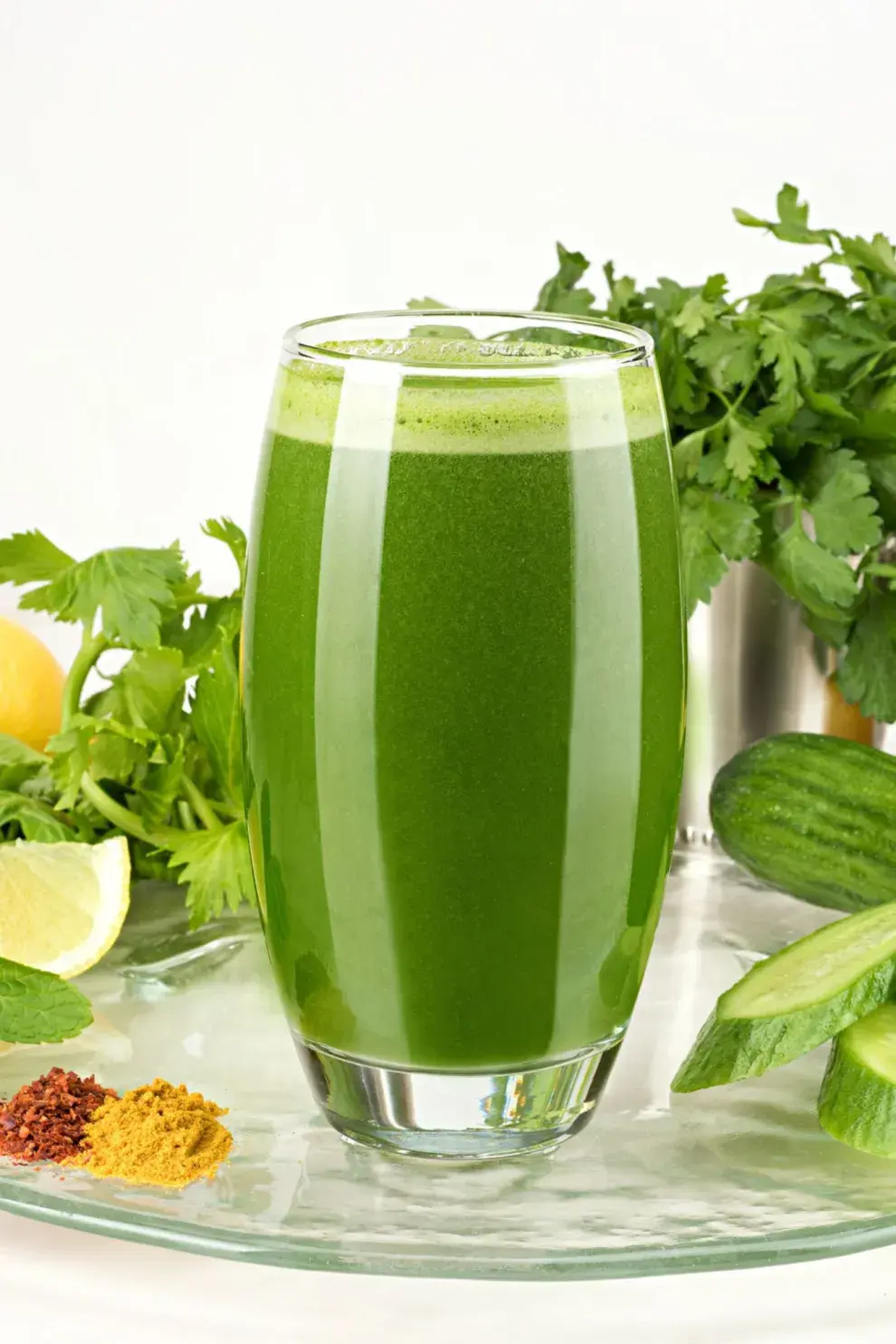 Sirve en un vaso alto y disfruta de tu batido verde détox keto.