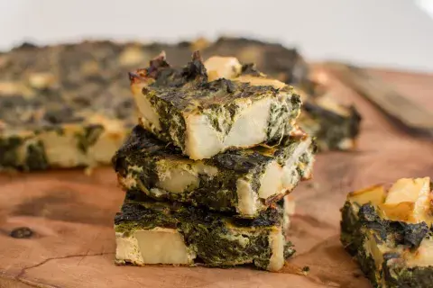 Tortilla al horno de hojas de acelga, remolacha y papas