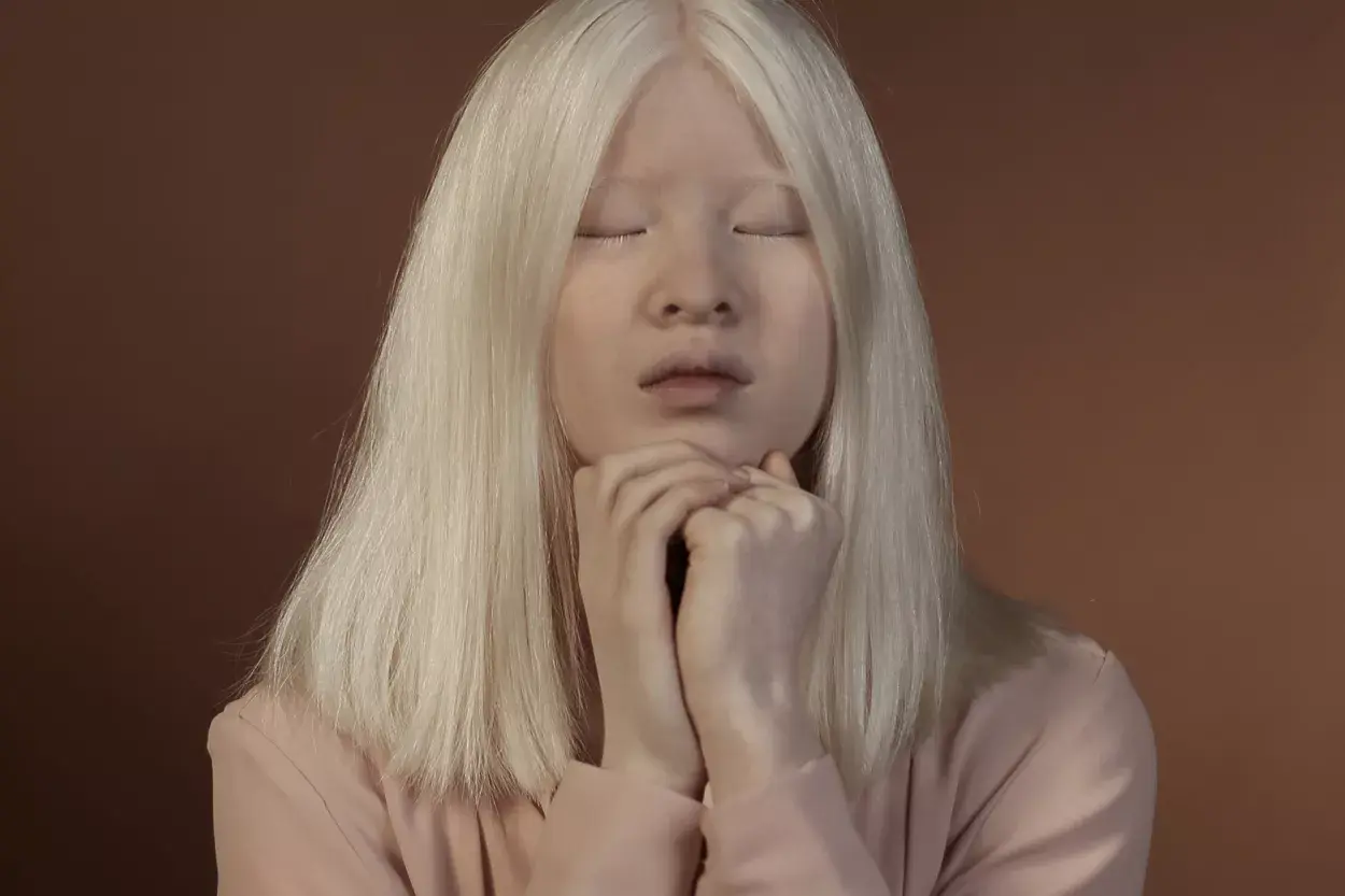 La falta de pigmentación en la piel y el cabello causa sensibilidad al sol y a la luz intensa, debido a que carecen de la pigmentación ocular que protege a los ojos de los rayos UV. Debido a la falta de melanina en la piel y los ojos, las personas con albinismo con frecuencia tienen una discapacidad visual permanente.
