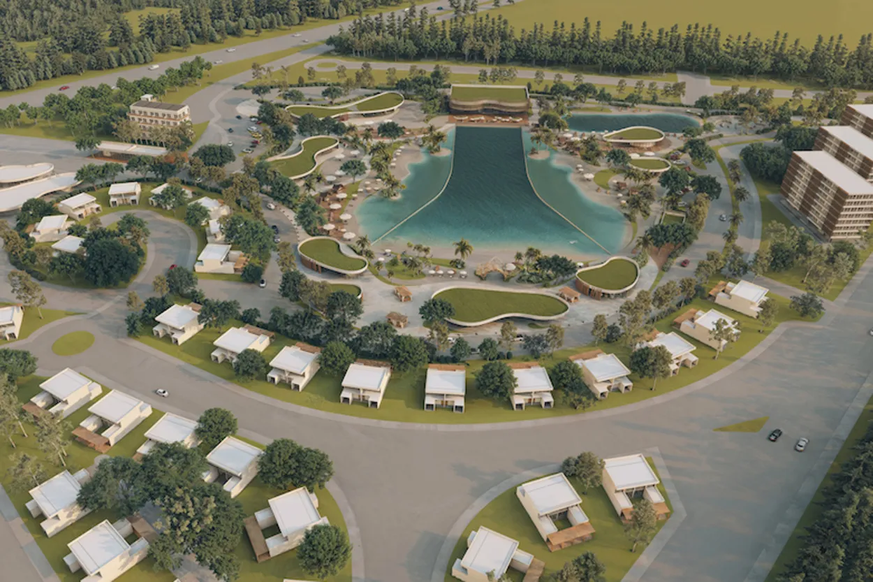 El complejo apunta a ser mucho más que olas: beach-club, gastronomía, spa y espacios de relax —algo ideal para compartir con amigos, familia o en pareja.