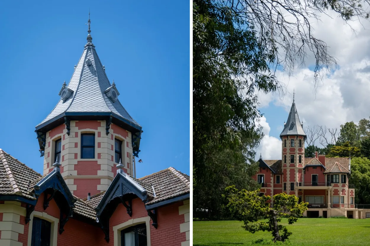 La postal más llamativa del lugar es su construcción principal: un castillo de estilo francés construido a fines del siglo XIX, con una torre color salmón y una cúpula gris que domina el paisaje. El edificio se levanta dentro de un parque de unas 60 hectáreas, rodeado de jardines, bosques y caminos arbolados que invitan a recorrer el predio con calma. El parque fue diseñado por el paisajista Frederick Forkel, quien creó un entorno con más de 350 especies de árboles y plantas, muchas de ellas traídas del exterior. Este trabajo paisajístico todavía se conserva y es uno de los grandes atractivos del lugar. La estancia también tiene una fuerte impronta histórica: perteneció a la familia de Felicitas Guerrero, una de las figuras más conocidas de la aristocracia argentina del siglo XIX.