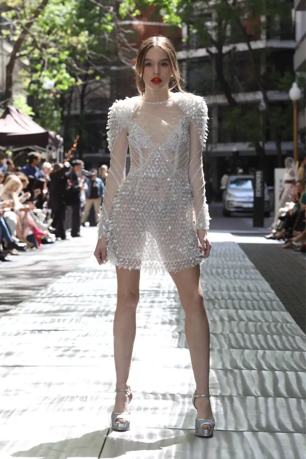 Sylvie Byrstin eligió una clásica vereda del corazón de Recoleta para presentar prendas sofisticadas y de trabajo artesanal. La sorpresa de la tarde fue ver en la pasarela urbana a India Ortega, la hija de Ana Paula Dutil y Emmanuel Ortega, que evidentemente lleva la moda en la sangre y desfiló como si lo hubiera hecho toda la vida. En el mismo desfile, Juanita Tinelli fue otra de las figuras y dejó en claro que la nueva generación viene pisando fuerte.