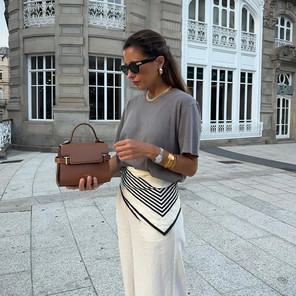 Este gesto, que podría parecer mínimo, está lejos de ser un simple capricho de moda. Anudar un pañuelo sobre pantalones, faldas o incluso vestidos se convirtió en una fórmula estilística que combina practicidad, personalidad y una pizca de nostalgia. Es una forma rápida y efectiva de darle una vuelta de tuerca a los looks clásicos.