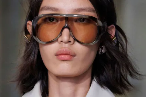 En cuanto a las lentes, la tendencia se inclina hacia el negro traslúcido o degradé, que aporta un aire más etéreo y permite el uso en interiores sin perder la elegancia. No obstante, los colores también reclaman su espacio mediante tintes cosméticos en tonos ámbar y azul acero, alejándose de los colores primarios vibrantes para buscar una estética más refinada y futurista.