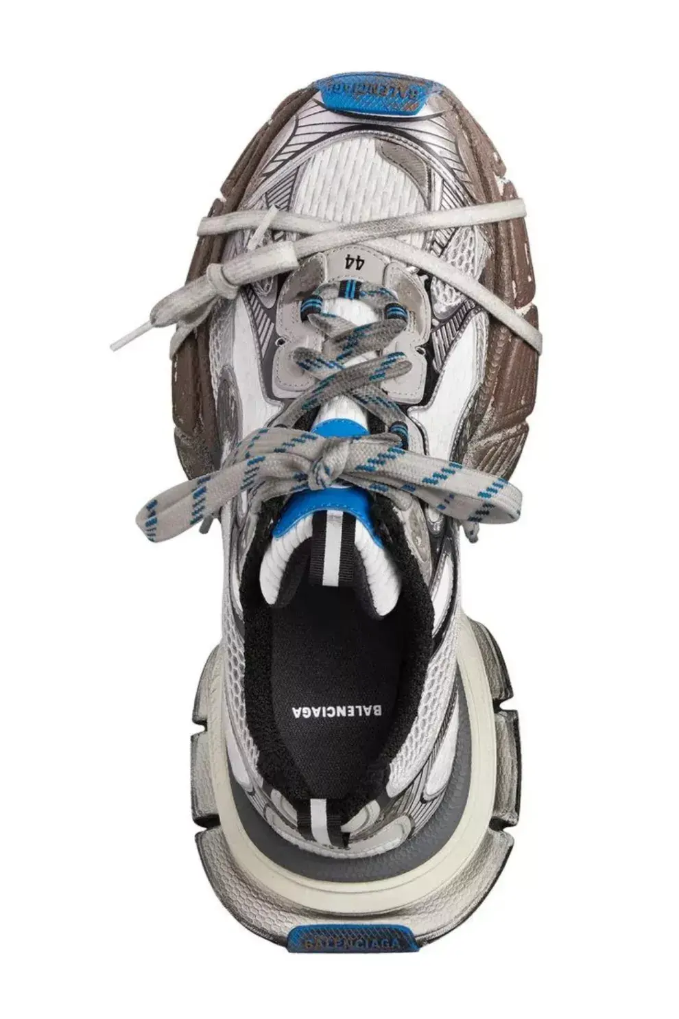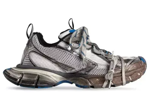Su diseño lo tiene todo: responde a una zapatilla chunky, de proporciones irregulares y gruesos cordones de cuerda. En vez del blanco impoluto de unas zapatillas recién compradas, este modelo – que no pierde la característica de ser nuevo - ofrece un gris desteñido, al que inevitablemente llegamos con el uso. Pero no, acá son recién salidas de la tienda. Y el toque final: el decorado de barro, una mancha marrón imborrable que funciona como sello de esta nueva colección, provocativa y extravagante, de Balenciaga. Lejos de retirarse, la casa de lujo apuesta de lleno a reinventarse – aún - más.