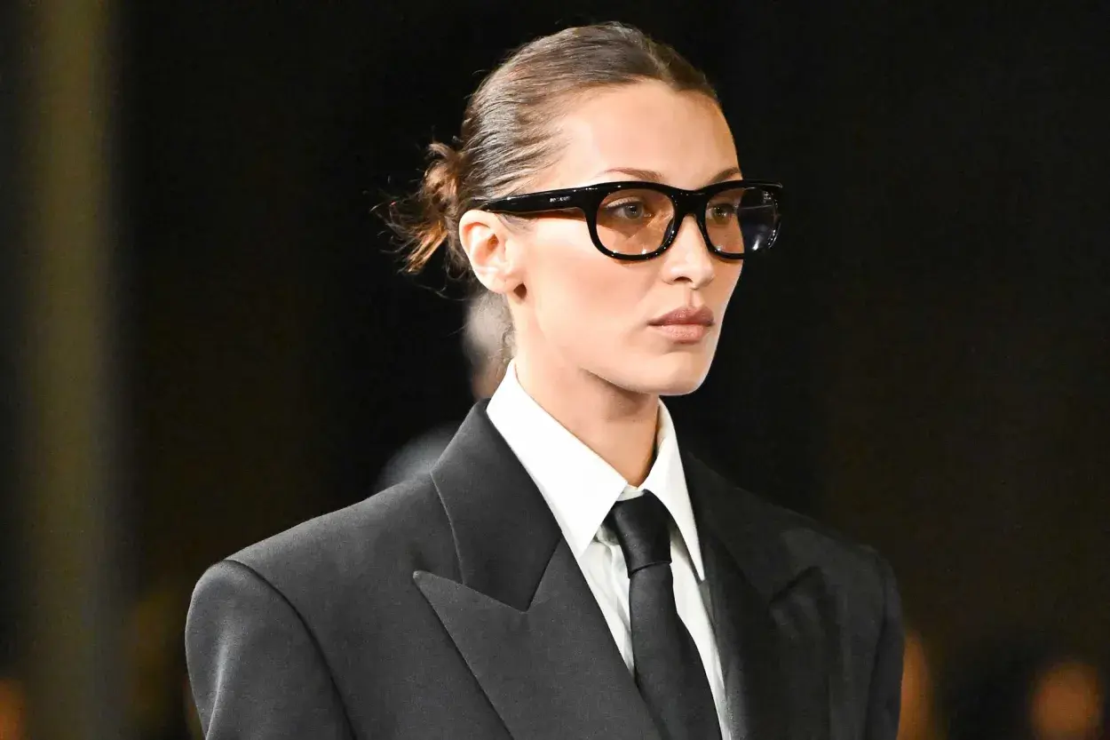 La vuelta del “power suit” en Paris Fashion Week: así lo lució Bella Hadid en homenaje a Yves Saint Laurent