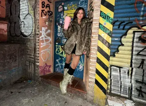 La china lució un abrigo de pelo y lo combinó con las "moon boots" que son virales. - Créditos: Instagram