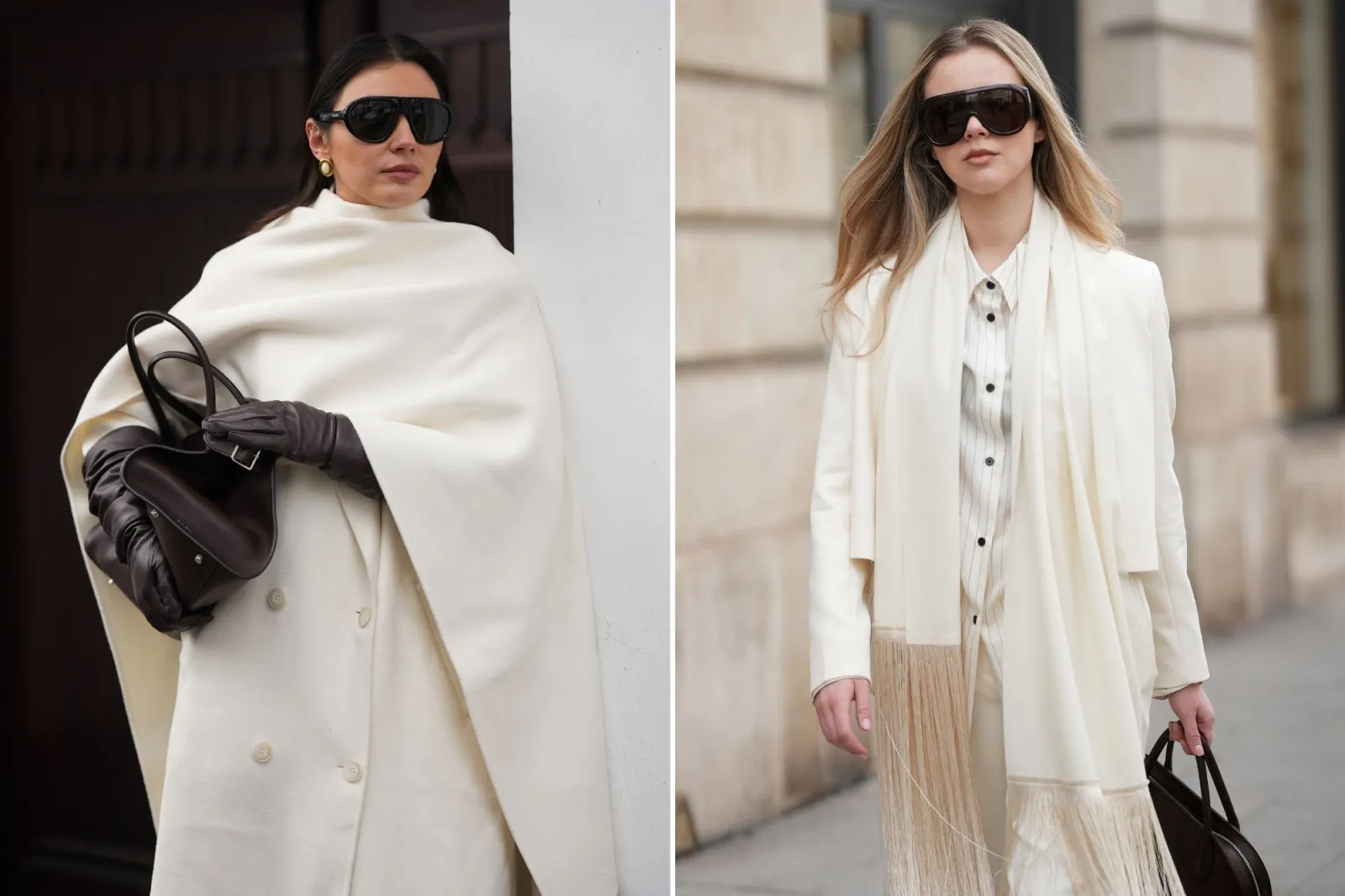 Para un look más sofisticado, combinar Cloud Dancer con negro es una apuesta segura. El contraste crea un efecto visual fuerte y elegante sin necesidad de sumar demasiados accesorios.
