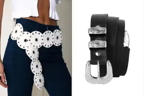 Fueron furor en los 2000 y nos cansamos de ver a celebrities usándolos. Estos cinturones de círculos grandes encadenados, y que a veces también incluyen tachas, son perfectos para usar con faldas o jeans.