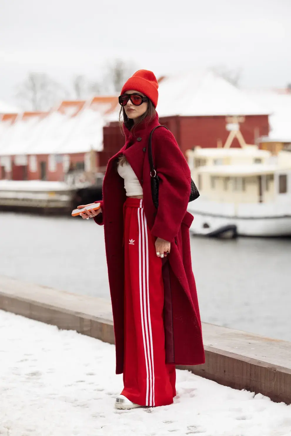 Un pantalón deportivo ancho, en tonos neutros o con rayas laterales, gana fuerza cuando se combina con un abrigo XL: tapados de pelo, paños oversize o trenchs largos que aportan estructura y sofisticación.