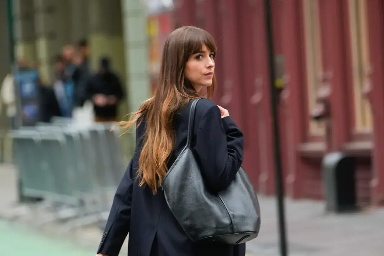 Dakota Johnson luce el tapado de cuero que es furor en la temporada 2024