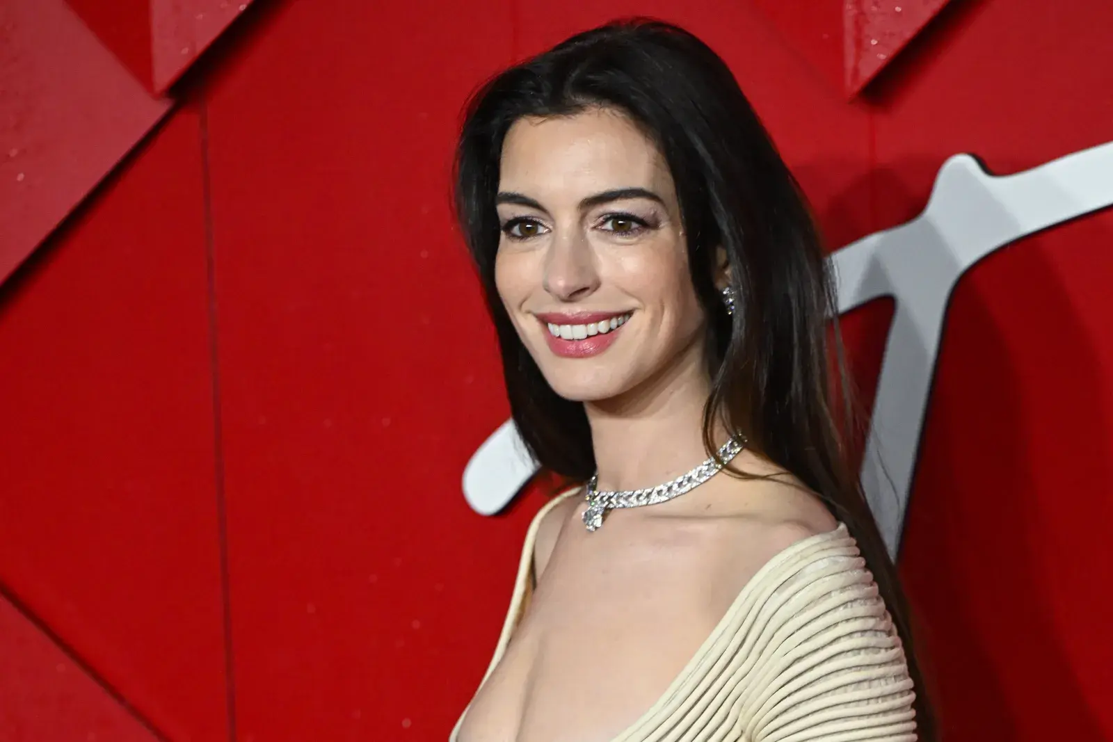 Anne Hathaway en la alfombra roja de los Fashion Awards 2023. - Créditos: Getty.
