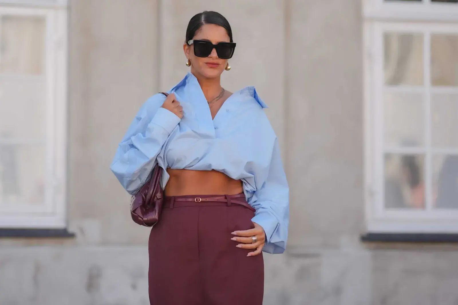 Finalmente, llegamos a la tercera opción. Esta, tal vez, a diferencia de las otras dos es la más jugada. Sin embargo, la crop shirt promete ser la vedette del verano 2025. ¿De qué se trata? De una reversión corta de la camisa original, algo así como un crop top, pero con la forma de camisa clásica.