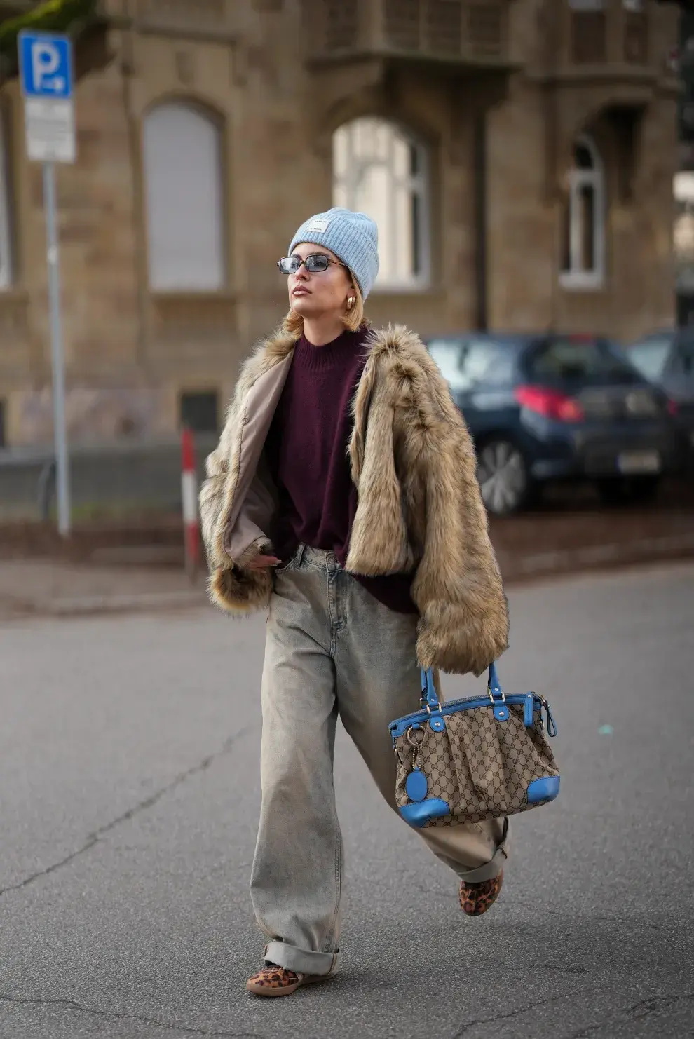 En clave más urbana, la tendencia también se cuela en bufandas XL, gorros tipo ruso siberiano que cubren orejas y frente, y bolsos de pelo largo que suman volumen, textura y un toque lúdico incluso a los looks más minimalistas.