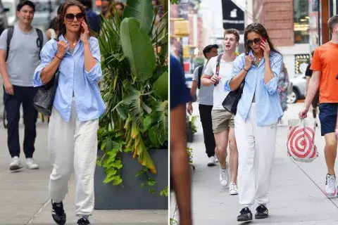 Katie Holmes se robó todas las miradas con su look effortless chic con un toque athleisure por las calles de Nueva York.