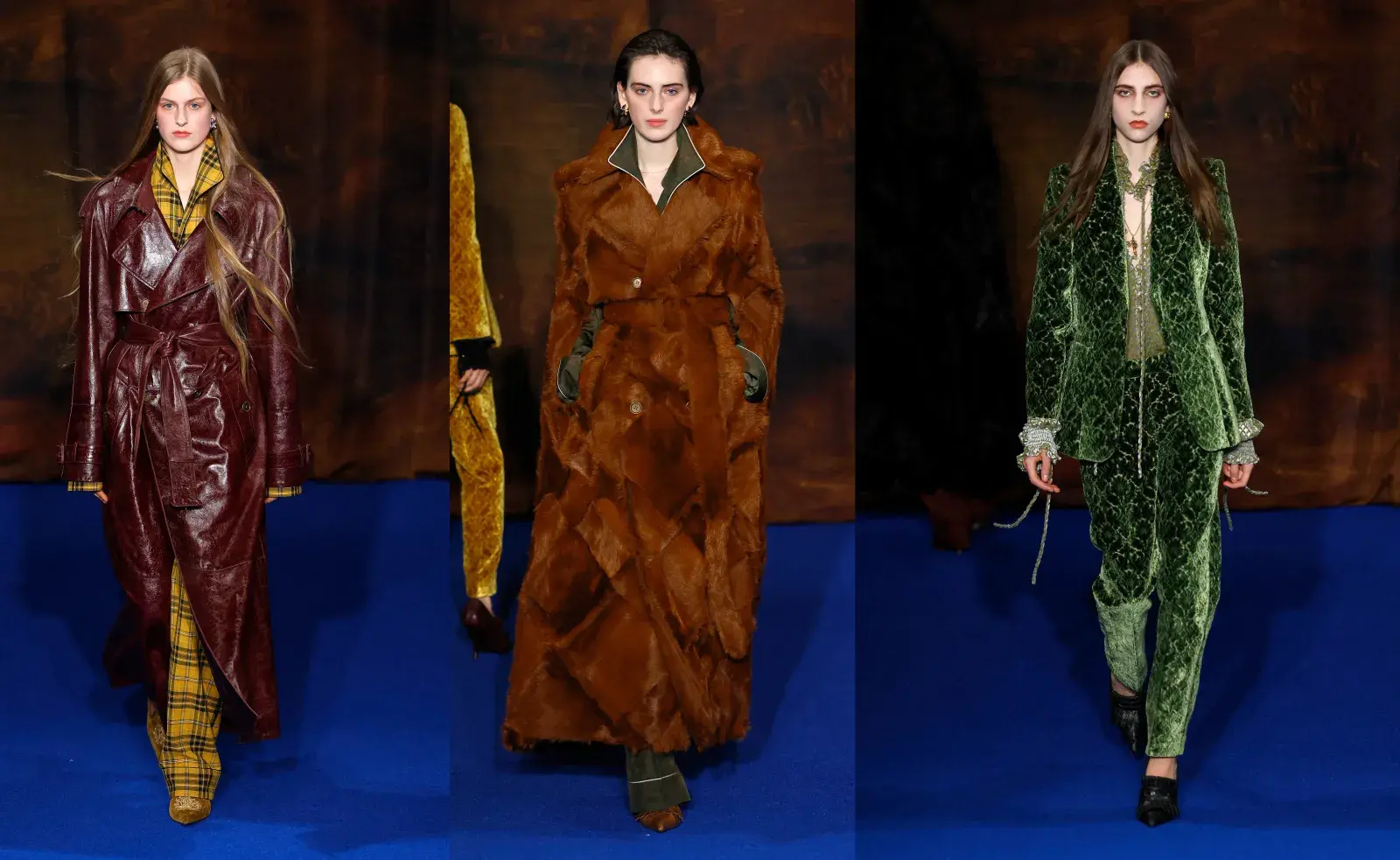 Abrigos de piel, trajes de terciopelo y tonos burgundy, algunas de las tendencias que vimos en Burberry - Créditos: Getty images