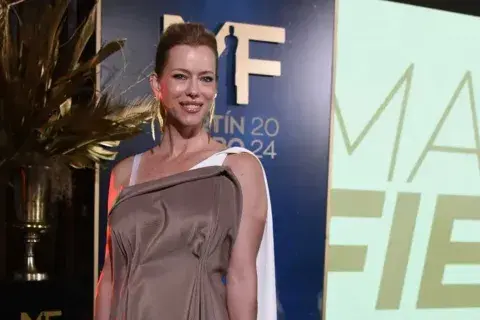 Si hablamos del estilismo elegido por sus hijas, podemos decir que Allegra llegó a la alfombra azul con un diseño largo en color vino con cut out y accesorios de brillantes en la cintura. El vestido de un solo hombro fue confeccionado por Laurencio Adot y le quedaba impecable. Por último, sumó sandalias de tiras con brillantes en color negro y una cartera con brillos a tono.