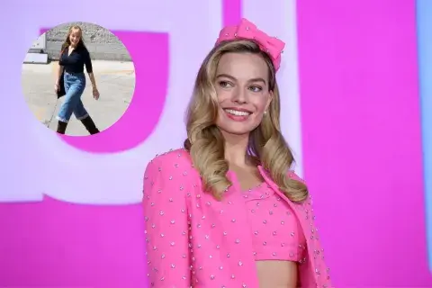 Margot Robbie volvió a imponer tendencia con un look que combinó jeans capri con el ruedo doblado y botas altas: ¡mirá cómo queda!