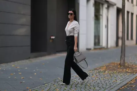 El conjunto sastrero es otro de los looks minimalistas más usados. La remera básica abajo y las zapatillas le dan un toque casual que suma.
