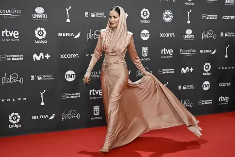 Ayer en Madrid se entregaron los Premios Platino y Natalia Oreiro dejó a todos sin palabras con su impresionante vestido que ella misma diseñó como homenaje a Evita Perón.