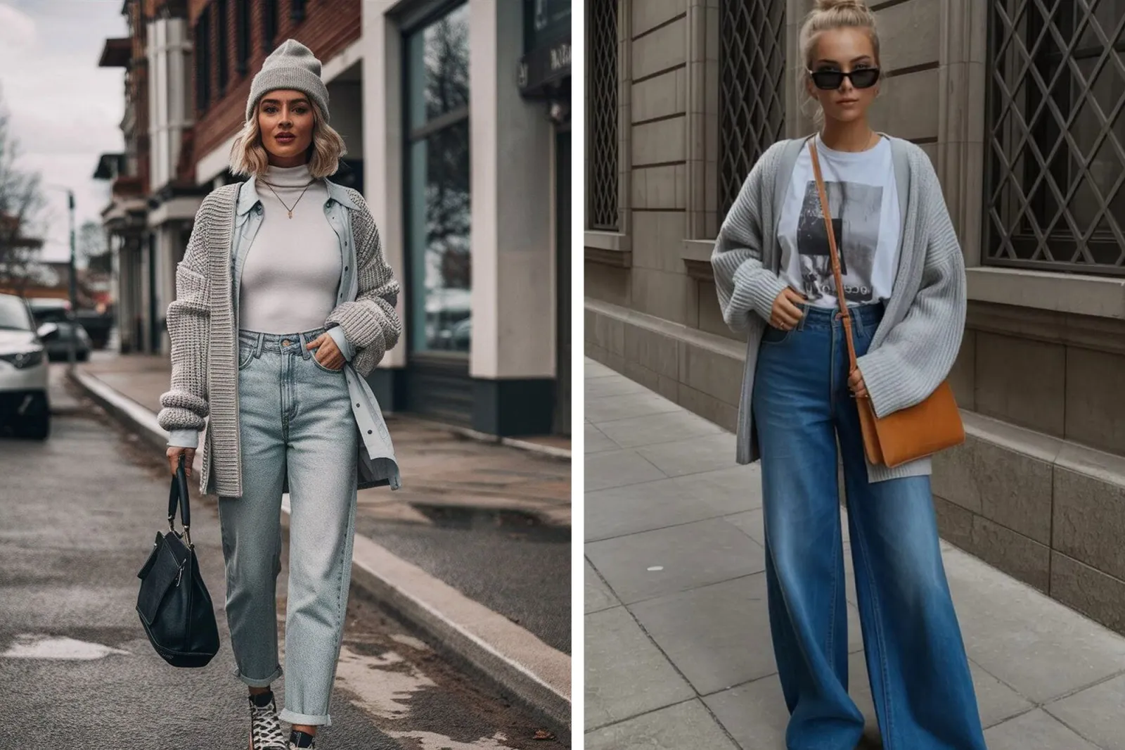 -Con knitwear: suéteres amplios o tejidos livianos aportan contraste y construyen una silueta relajada.