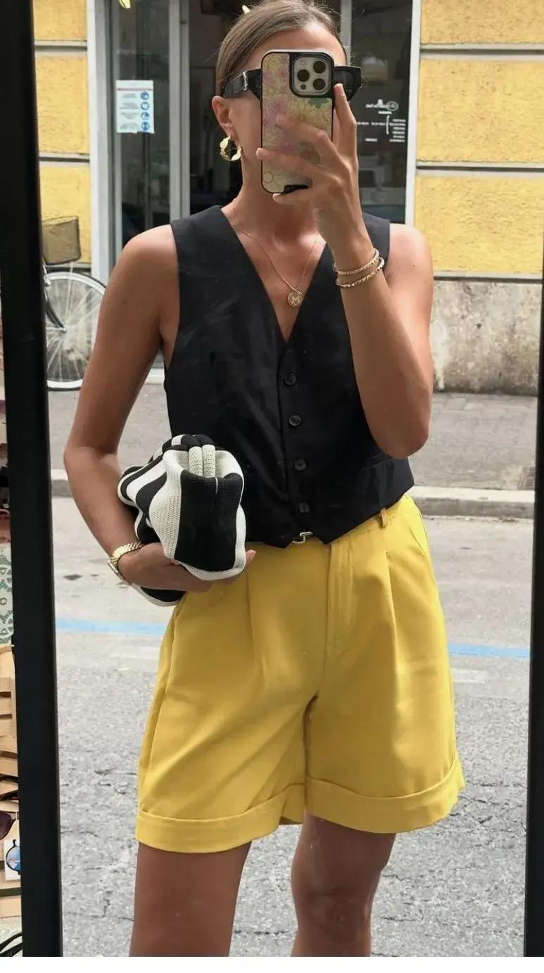 Los shorts de vestir tiro alto son la alternativa que combina estilo, comodidad y frescura como pocas. Con su estructura sastrera, materiales livianos y una silueta que estiliza, permiten armar looks sin pasar calor. Y lo mejor: son increíblemente versátiles. Funcionan con blazers, camisas amplias, chalecos sastreros y hasta con tops más relajados si el ámbito lo permite.