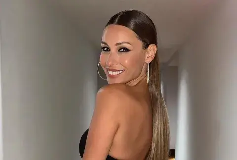La modelo y conductora se lució con un vestido negro con escote corazón de María Godof, bien ajustado y escotado. Un look elegante para la ocasión y a la vez súper sensual.