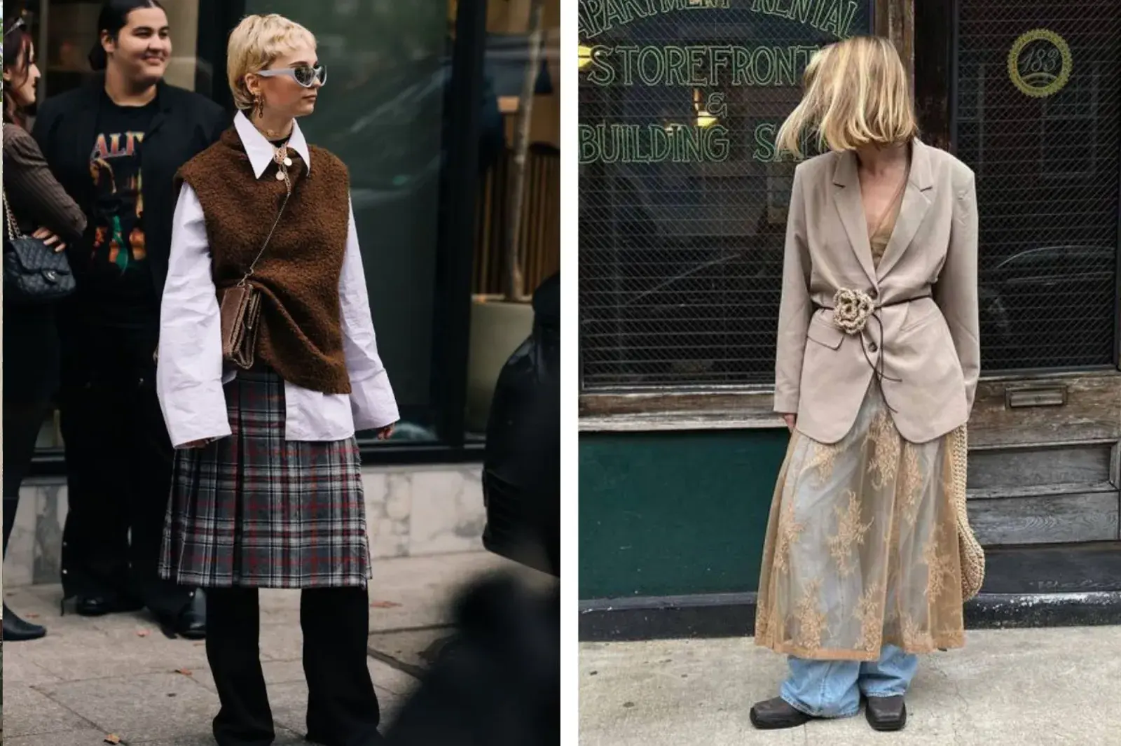 Las opciones para jugar con esta moda son miles. Aunque lo ideal es usar una falda tableada, también se pueden usar versiones en denim, faldas midi o hasta tejidas. Lo mismo pasa con los pantalones que elijas para llevar debajo: pueden ser jeans slim fit o wide leg, pantalones cargo y parachute pants. Obviamente, la elección que hagas va a determinar el estilo que logres. Te mostramos algunas formas de llevar la tendencia skant para que te inspires: