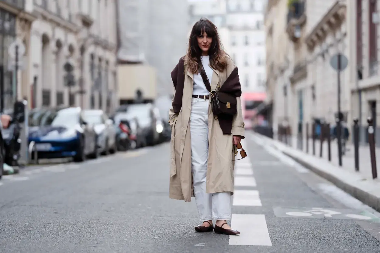La combinación de tonos blancos y marrones, vas a verla muchísimo durante este invierno 2024. También las minibags, vuelven con todo. - Créditos: Getty