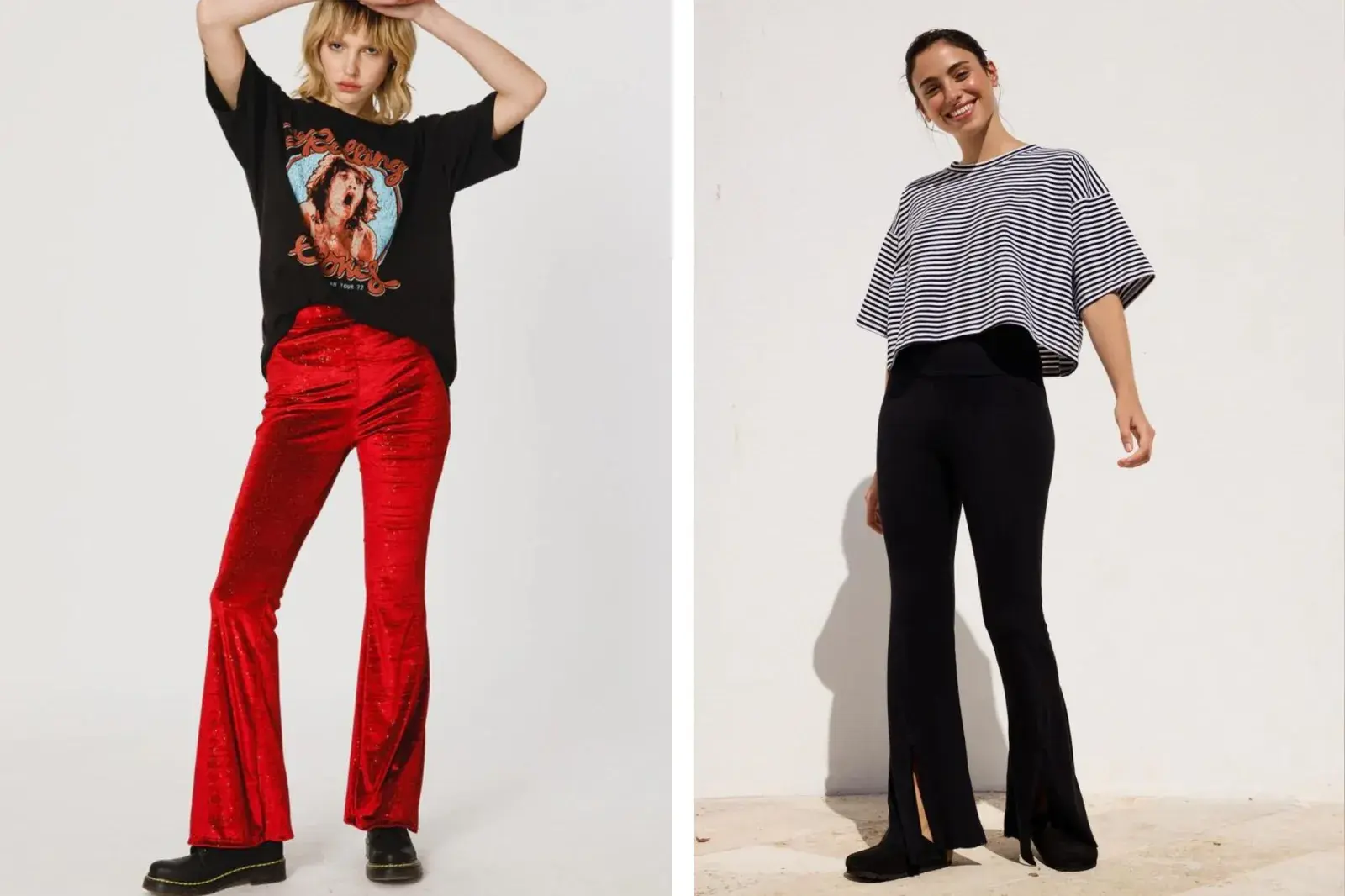 Las calzas Oxford -o acampanadas- están súper en tendencia. Recorrimos algunos percheros para mostrarse algunos diseños muy lindos.