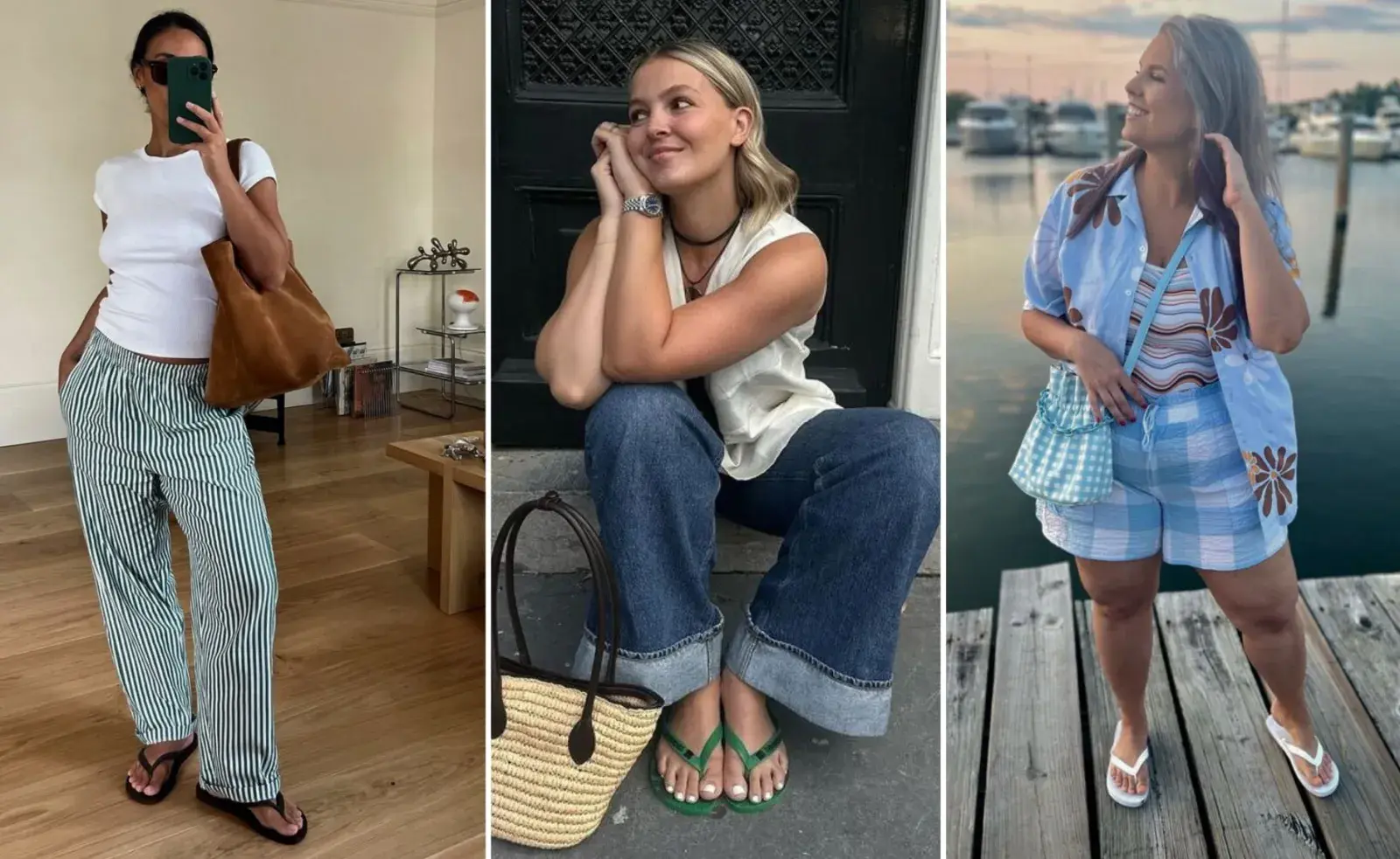 Las ojotas clásicas se pueden sumar a todo tipo de estilos y looks. Con pantalones anchos y frescos es el outfit perfecto para un paseo veraniego - Créditos: Pinterest