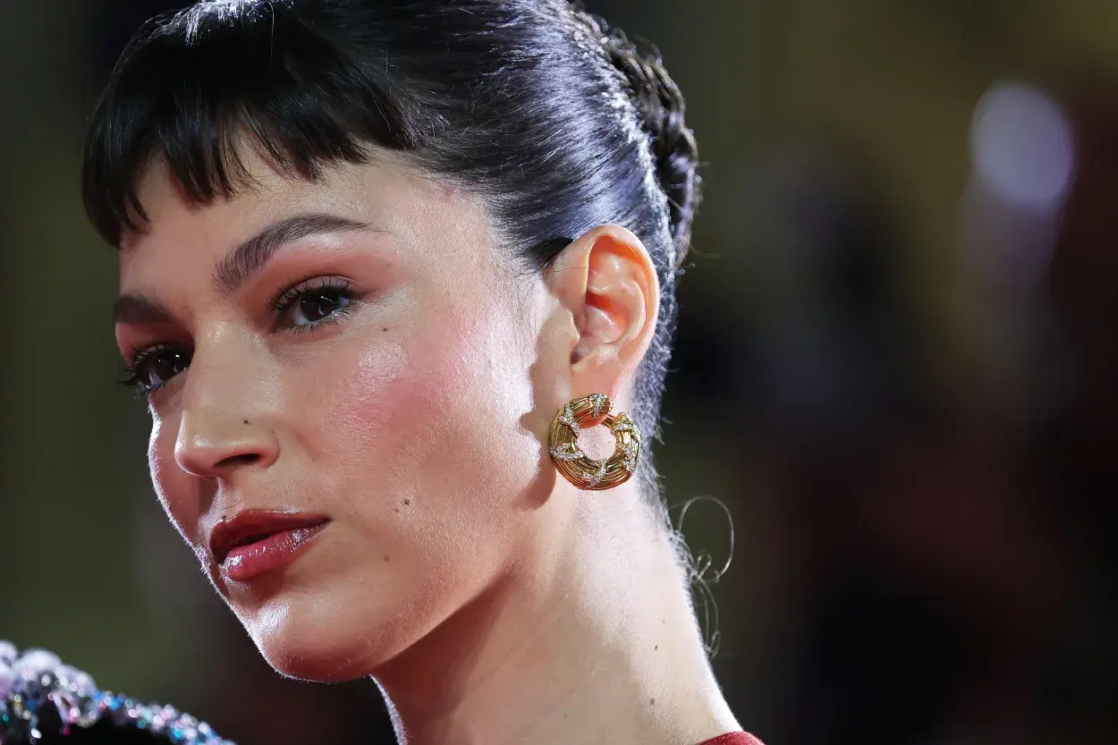 Por último, para cerrar con el estilismo Corberó eligió llevar esta propuesta de moda con unas sandalias en piel de cordero con puntera en forma de pétalo, tacó angular lacado brillante y una suela en goma con el anagrama en relieve, de la misma colección Otoño/Invierno 2024-2025. Si hablamos de su look beauty, la actriz se inclinó por colores acorde con el diseño elegido: colores tierra y resaltó su mirada con un delineado protagonista. Finalmente, el cabello lo llevó suelto y lacio con un gran flequillo cortina que le quedaba espectacular.