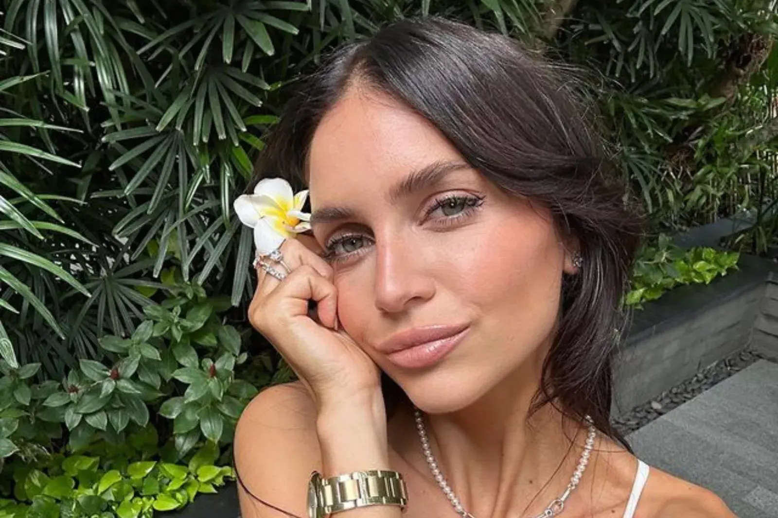 En cuanto a los accesorios, la menor de las Nara llevó collares y anillos de la firma para la que está trabajando, y agregó un sombrero playero de yute y una minibag tejida de Chanel, en color crema.