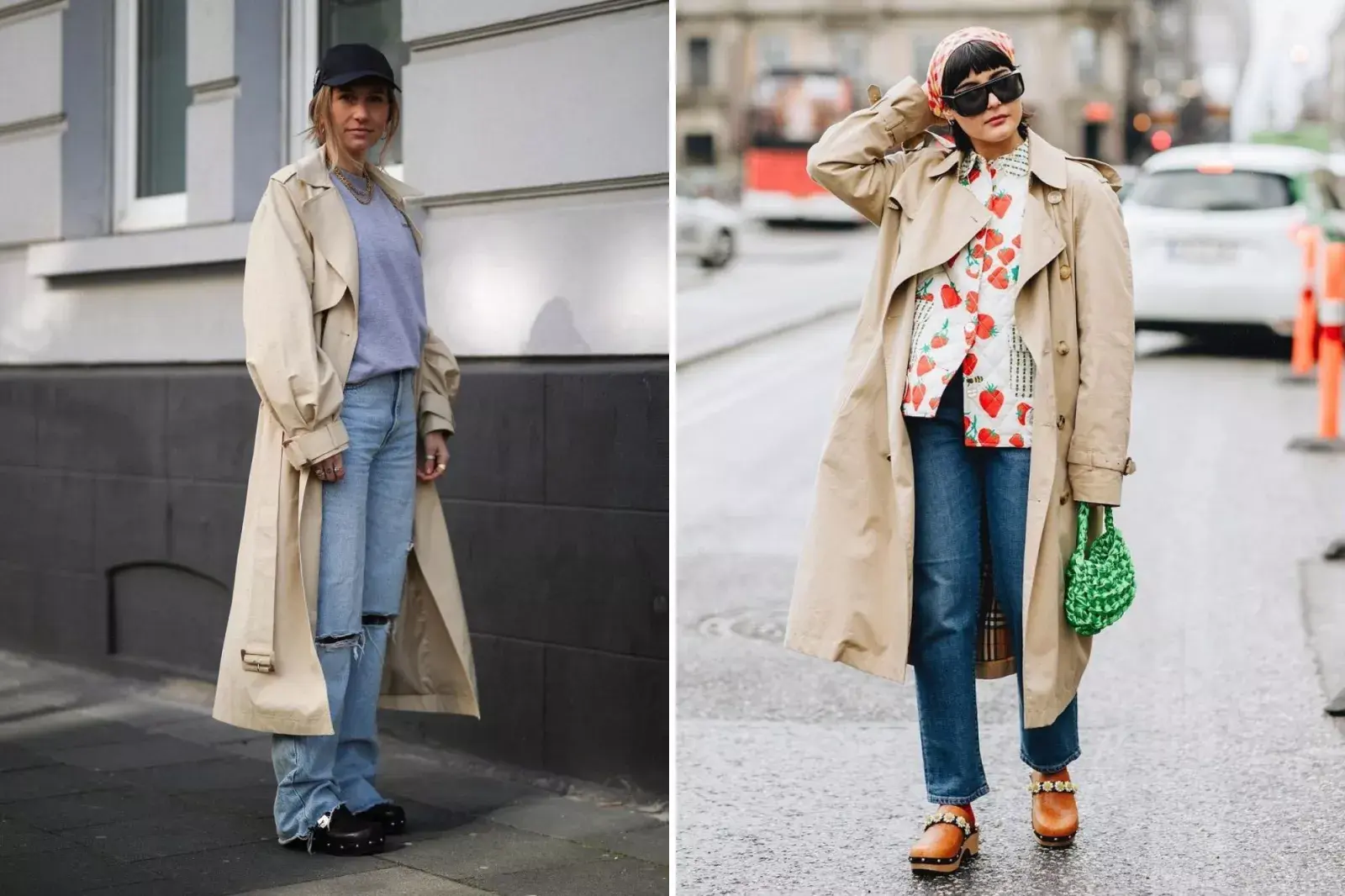 - Con trench. A tu look casual, con remera y jeans de corte relajado, sumás el ítem esencial del otoño, un trench clásico, unos zuecos y estás lista para salir. Podés sumar, como en la foto un gorro deportivo o un maxibolso para sublimar el look.