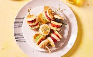 En 5 minutos. Receta: brochettes de frutas y mini pancakes