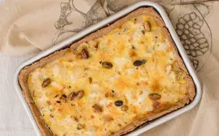 Qué comemos hoy. Tarta de queso azul y palmitos