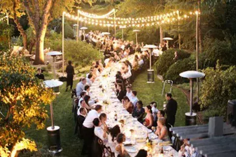 Las mesas redondas quedaron en el olvido, hoy se están usando un montón las mesas infinitas para sentar a todos nuestros amigos. Si vas a armar un festejo con mesas largas te recomendamos armar bien el plan de sitio (es decir, dónde se sienta cada uno de tus invitados) ya que si bien estas mesas quedan increíbles un contra que tienen es que no te permiten hablar con todos. Más bien, de acuerdo a este tipo de diagramas, estás limitado a charlar con los de tus costados y quien se siente frente a vos. Tremendo si te toca un vecino clavo.