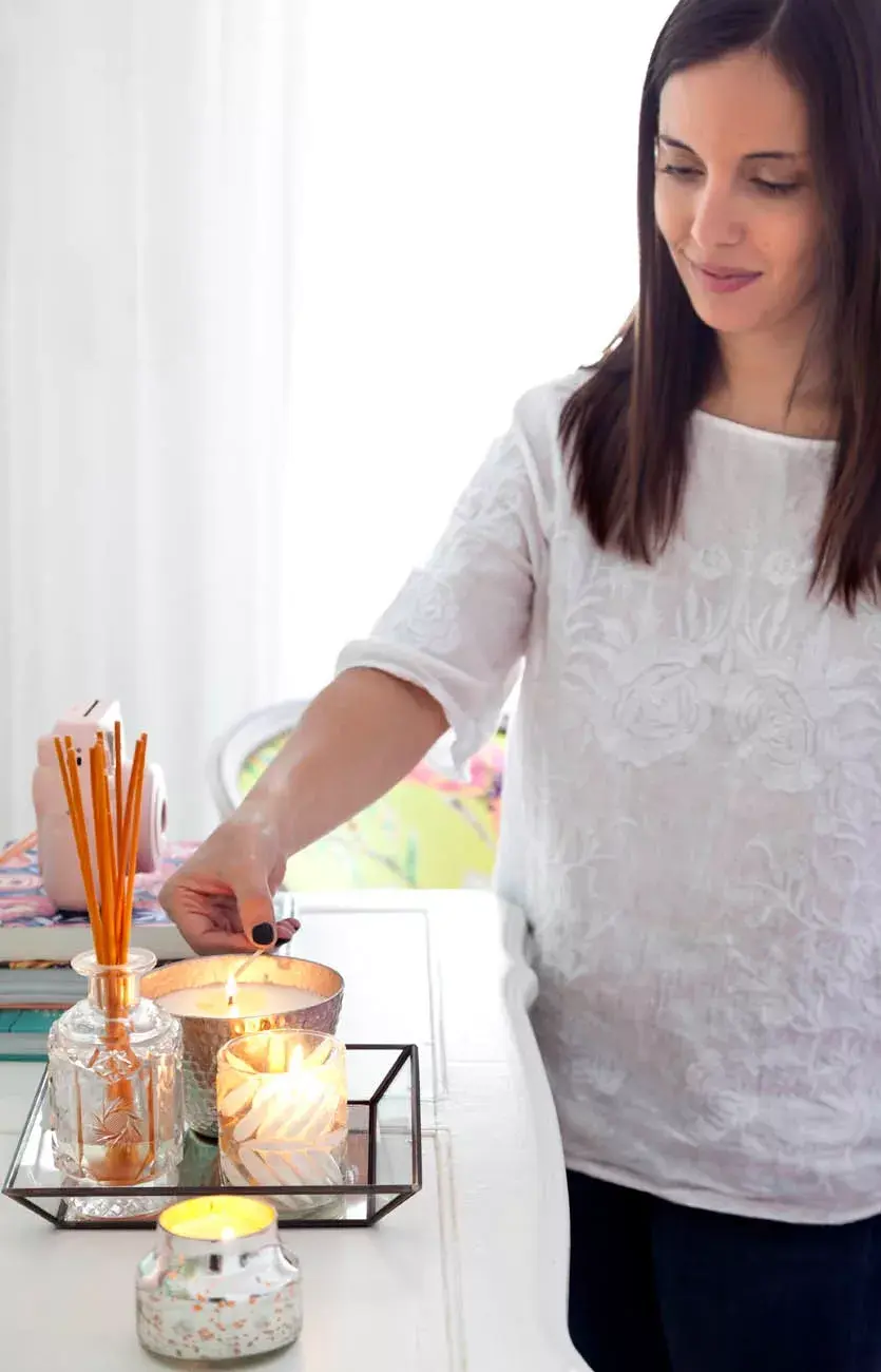 Cuando Flor invita a sus amigos a su casa, le gusta preparar este rincón con velitas y sahumerio. Pero ella no cocina; prefiere que lo haga otro con las especias que sobran en sus estantes, y que le encantan.