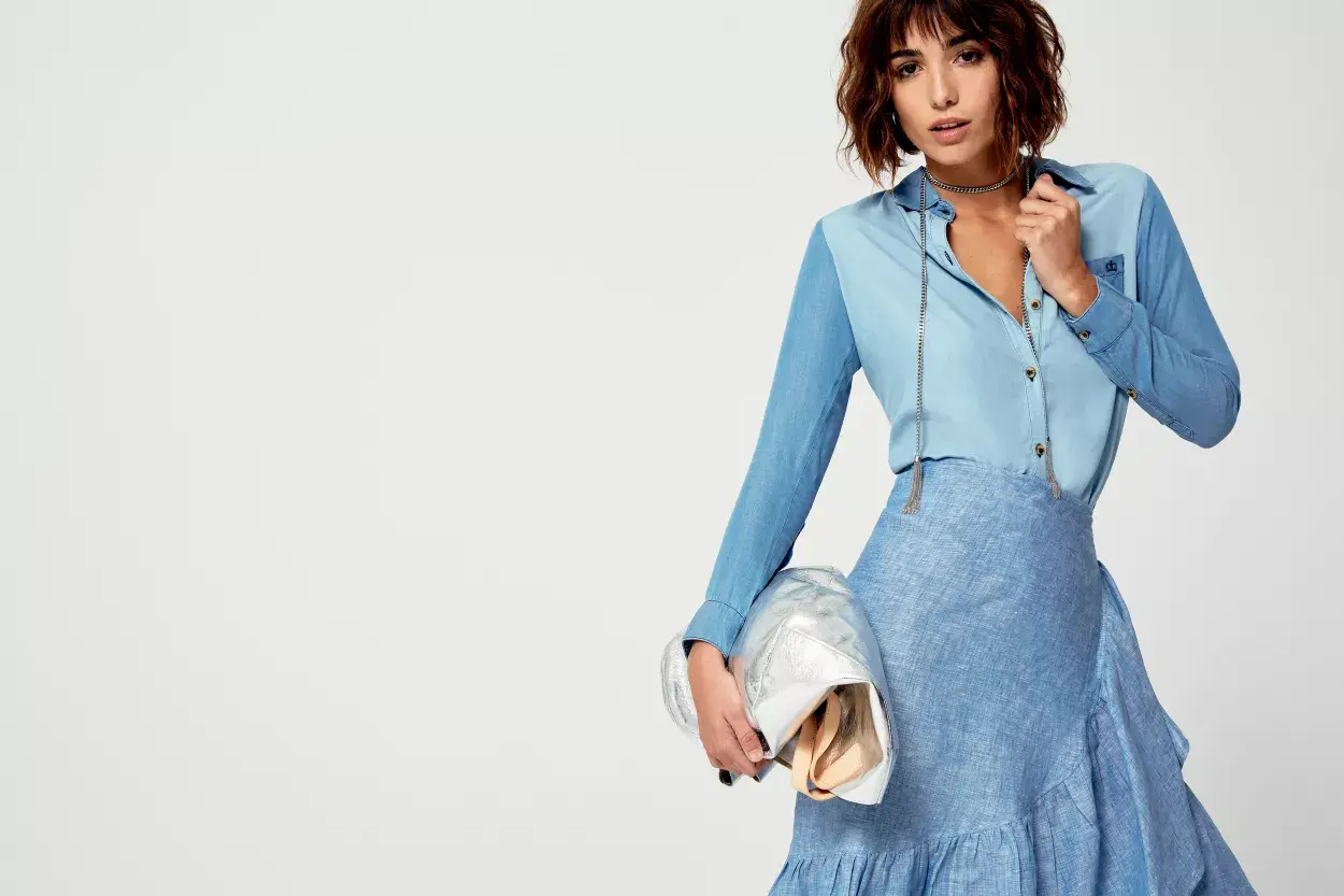 - La tendencia del jean con jean es inagotable. Combiná la pollera con una camisa en distintos tonos de denim y cumplí con otro must de la temporada. Podés sumar una bien finita a tu guardarropas y usarla para complementar un pantalón o pollera de jean.