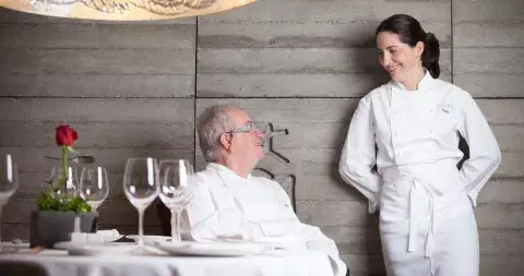 Juan Mari Arzak y Elena, su hija, en el salón del restaurante