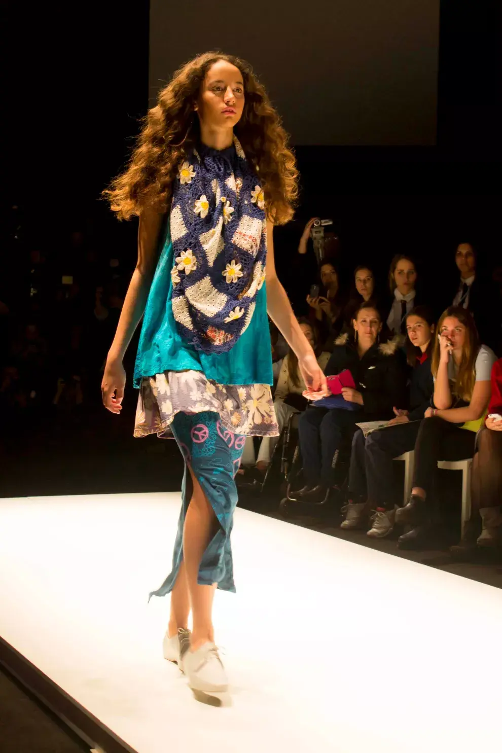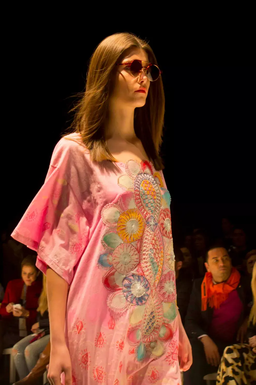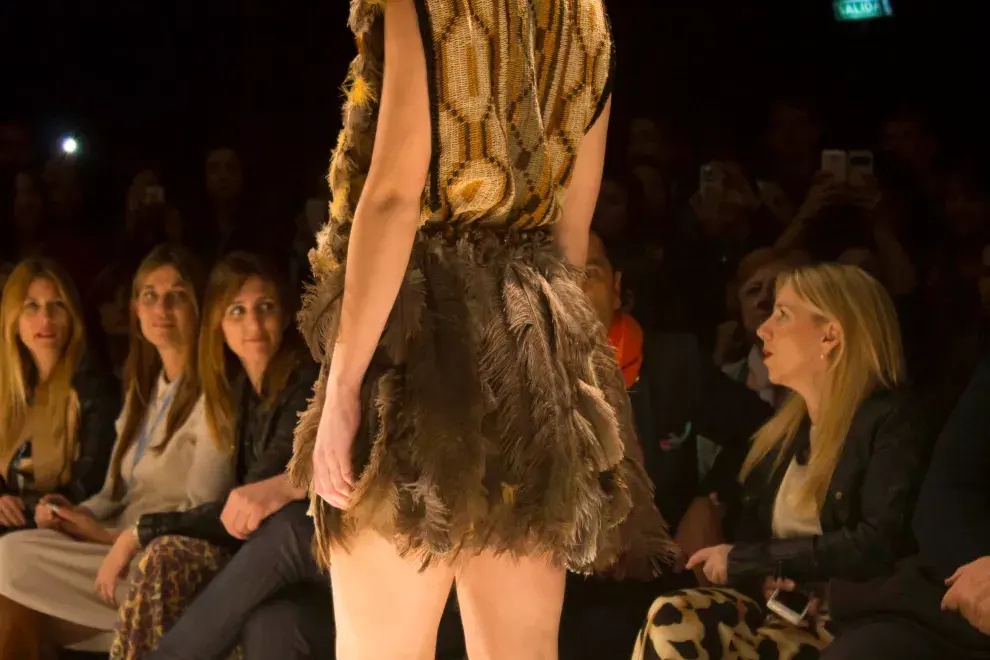 El desfile de Juana de Arco se dividió en dos partes, un pequeño desfile inicial con muchos colores tierra, textura, plumas y tejidos. Y una segunda parte llena de color, por momentos algo psicodélica, por otros no tanto. Mucho color, mucha estampa. Me encantaron los anteojos de sol que usaron para esta pasada, la música de Los Beatles y los peinados recordando el pelo largo con línea al medio algo hippie.